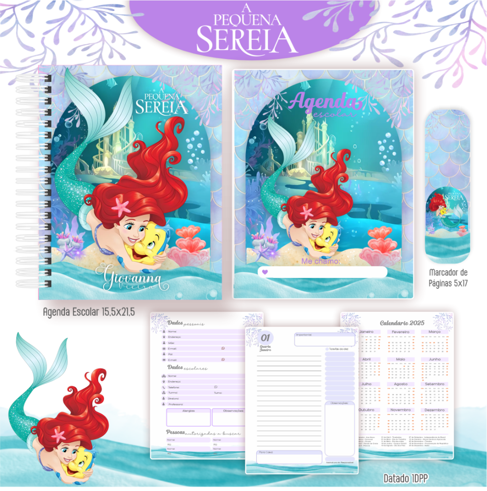 AGENDA ESCOLAR, TAMANHO A5, UM DIA POR PÁGINA, MIOLO PERSONALIZADO.