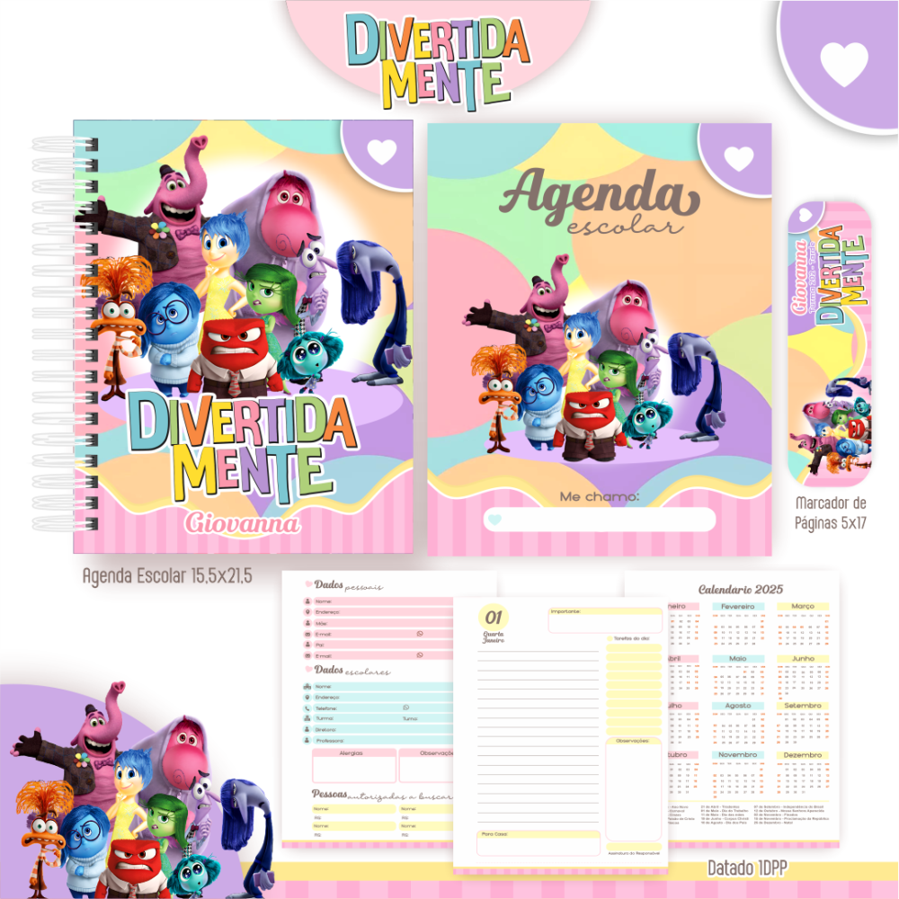 AGENDA ESCOLAR, TAMANHO A5, UM DIA POR PÁGINA, MIOLO PERSONALIZADO.